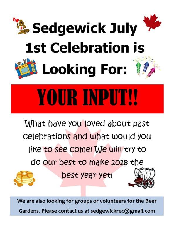 The Sedgewick July 1st Celebration is seeking input from the Community for the 2018 July 1st Celebration!